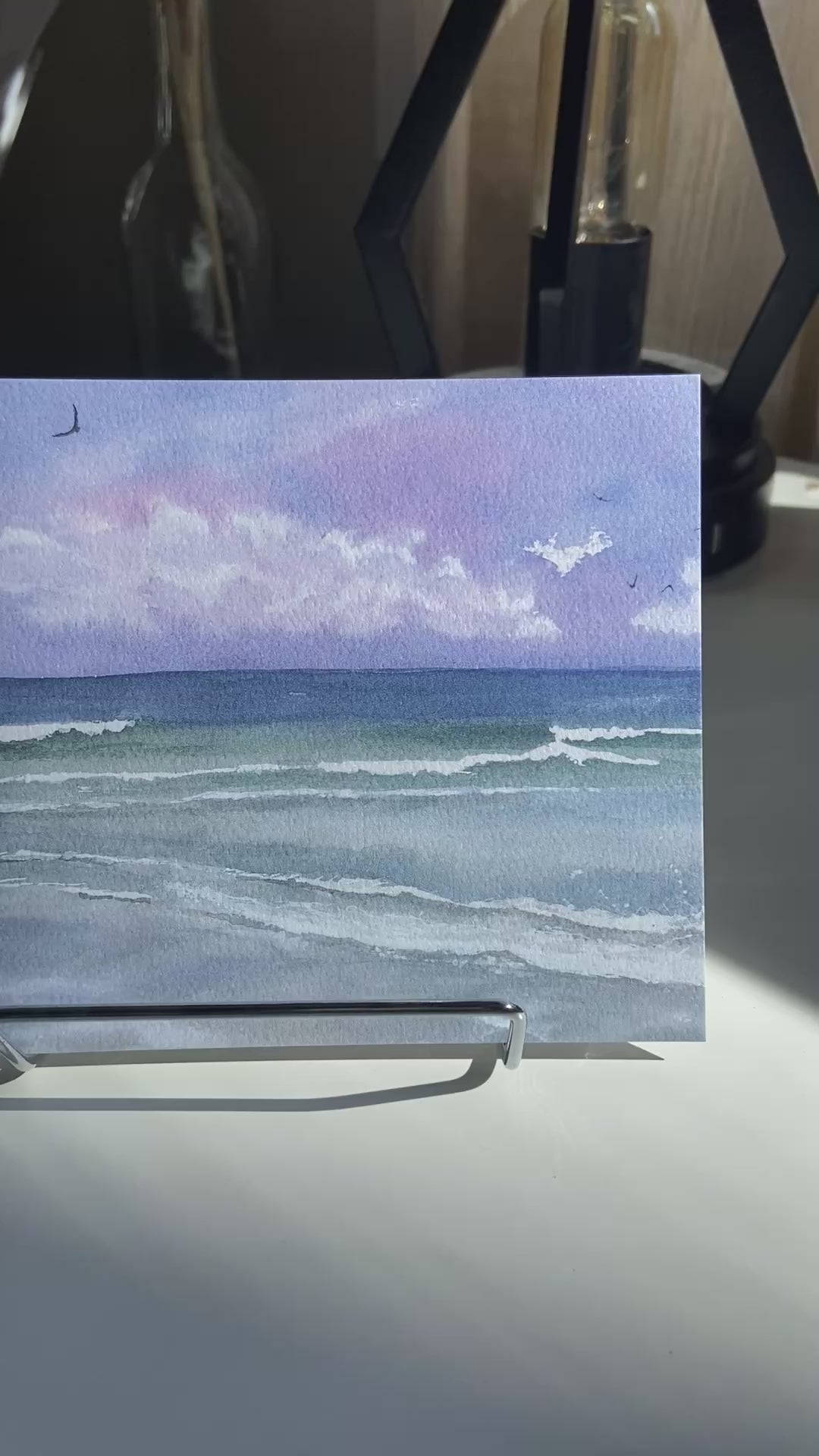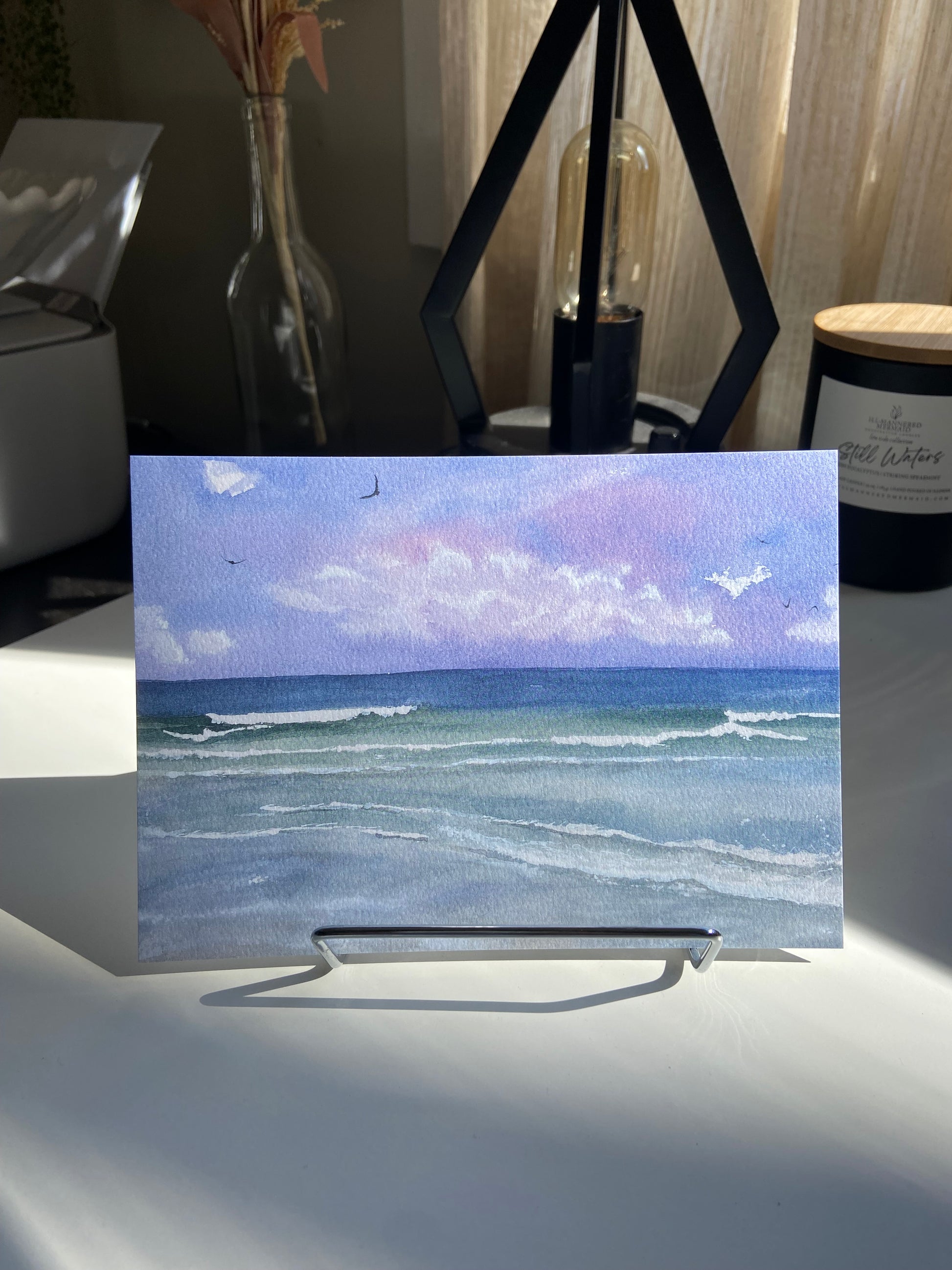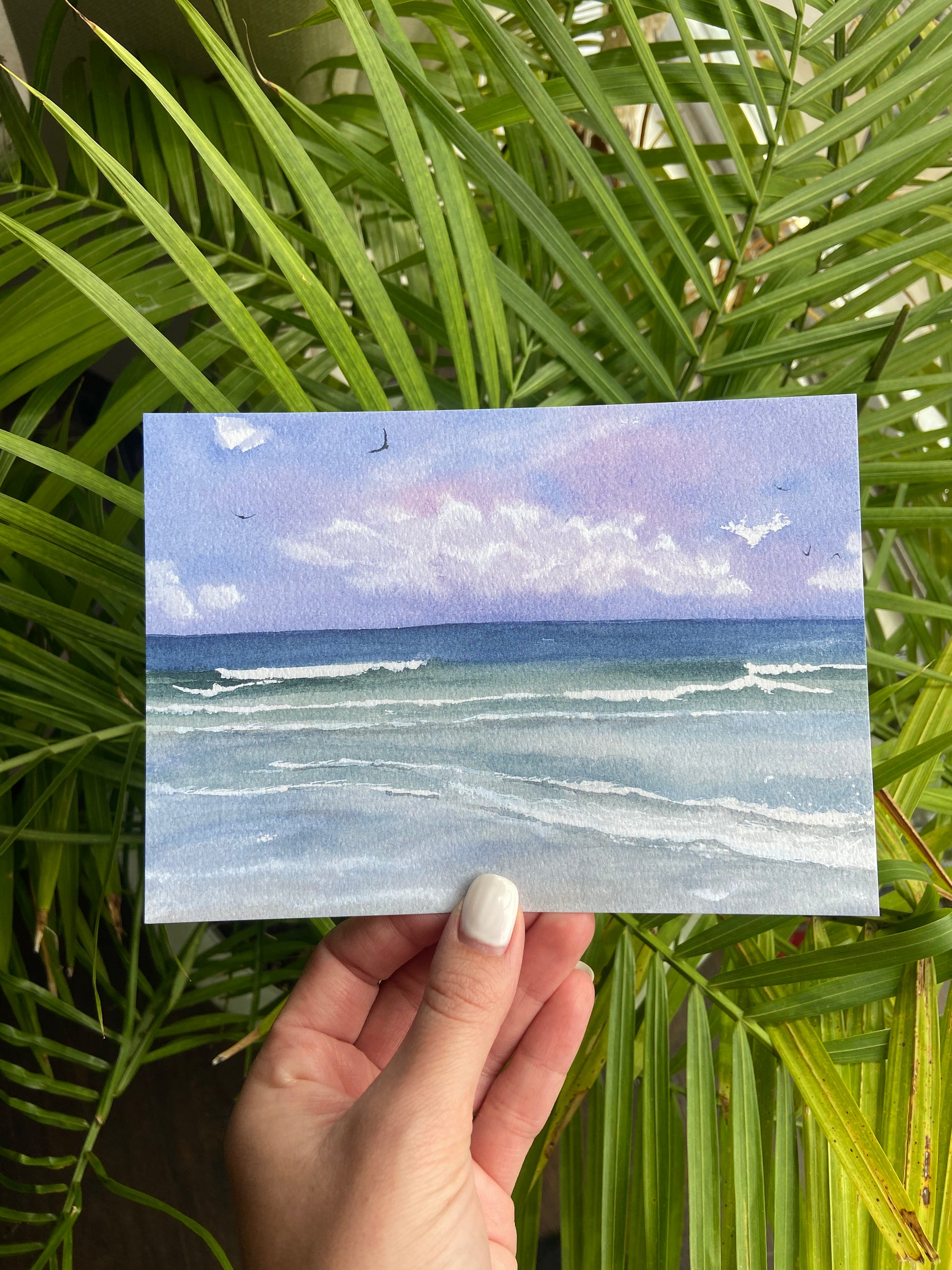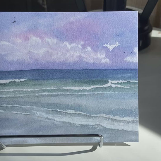 Purple Skies - Beach Watercolor Print with Ocean Waves